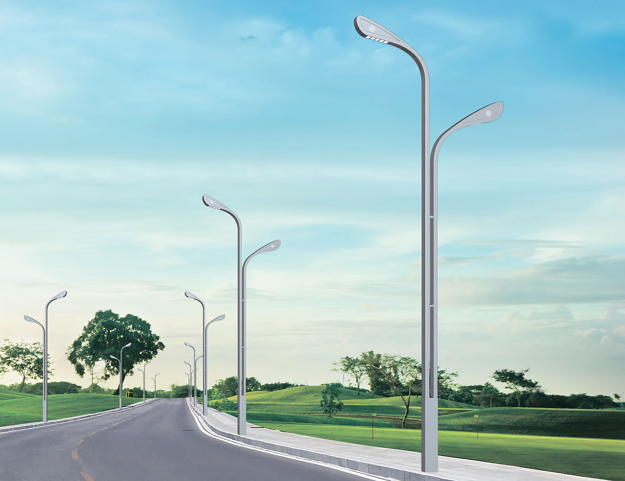 在市政建設中,LED路燈、綜合桿、多功能路燈是必不可少的建設產品,路燈的設計對城市的夜間氛圍有著顯著的影響,主要體現在以下幾個方面: 照明效果:高亮度的路燈能夠均勻地照亮街道,創造一個明亮、安全的環境,使城市在夜晚看起來更加活躍和溫馨。良好的照明不僅方便了夜間出行,還能提升整體的視覺體驗,增強空間的可識別性和舒適度。